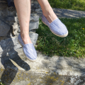 Espadrille plate rayée. L’espadrille indispensable de votre été!!! Existe dans 3 couleurs: marine, rouge et beige.
