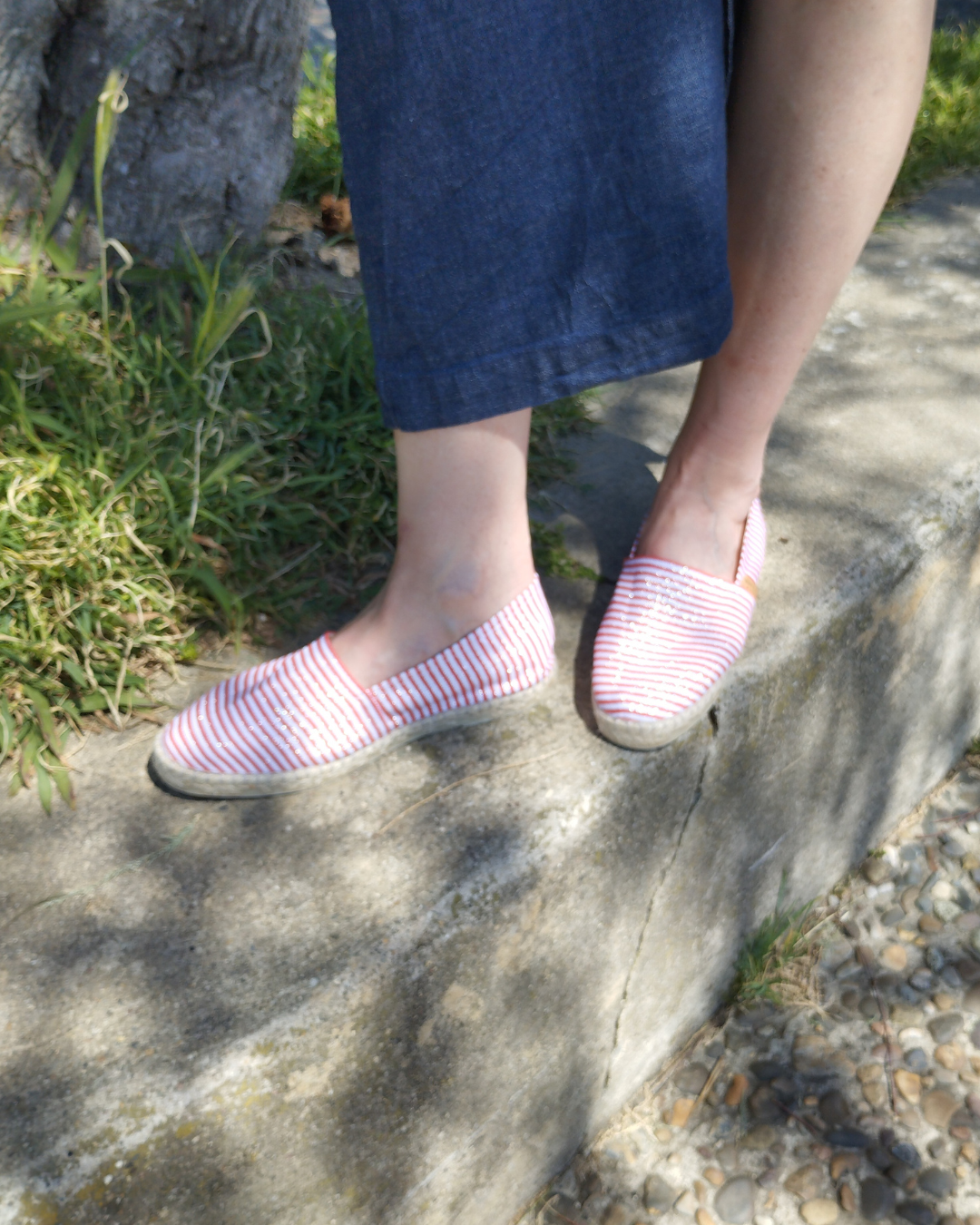 Espadrille  plate rayée. L’espadrille indispensable de votre été!!! Existe dans 3 couleurs: marine, rouge et beige.