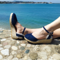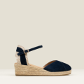 Copita est une espadrille à talon compensé bas, à la silhouette légèrement fermée, dotée d’une boucle et de proportions épurées et harmonieuses.