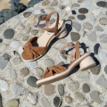 Les brides forment un nœud délicat qui souligne le pied avec féminité et élégance.