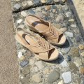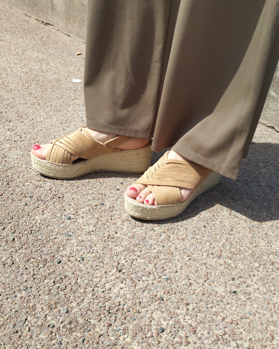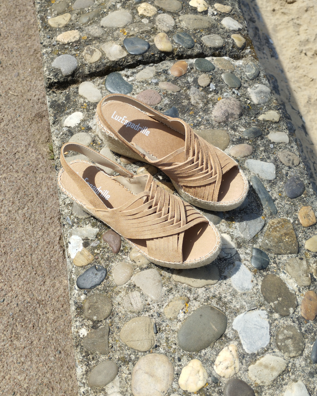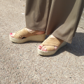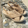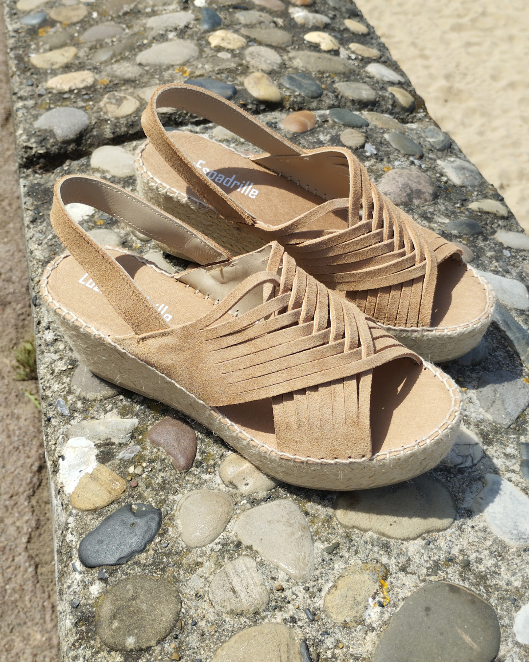 Espadrille en nubuck ultra confortable avec brides croisées sur le dessus et talon ouvert avec bride arrière élastique, semelle bien moelleuse.