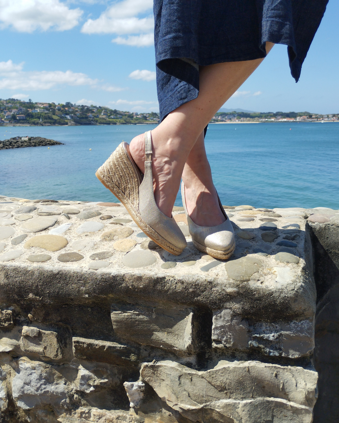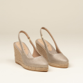 Lilo est une espadrille compensée mi-haute à bout pointu et talon ouvert, dotée d’un élastique latéral pour un confort optimal.