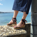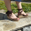 Raul est une espadrille compensée mi-haute au design ouvert, nouée à la cheville par des rubans et dotée d’un décolleté en forme de cœur qui crée une silhouette féminine et contemporaine.