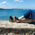 Sa plateforme multicolore apporte une touche d’originalité qui renforce son allure estivale.